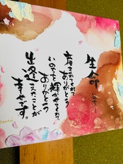 そのキャンバスの上にet.rieさんの書を描いた作品です。住宅の和室やリビング、お店の演出などに彩りを演出できる作品になりました。